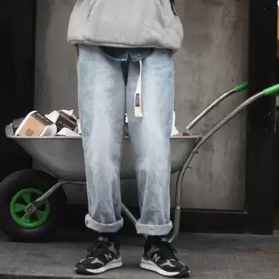 Nobody knows Japanese autumn and winter washed retro old loose casual j simple neutral straight jeans