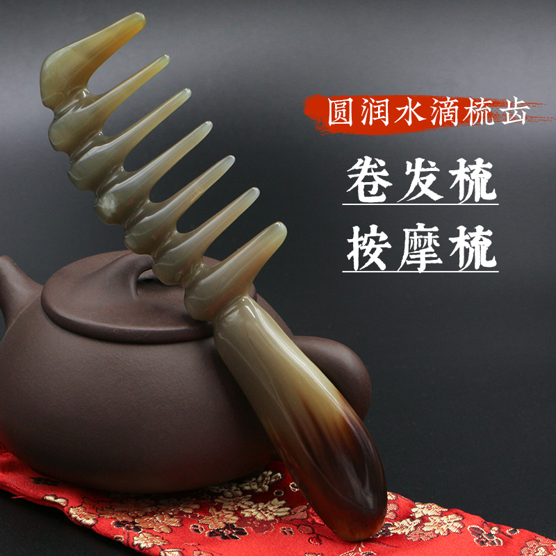 Natural white Yak horn comb Large tooth comb Coarse tooth wide tooth curly hair comb Perm comb Head meridian massage comb Large