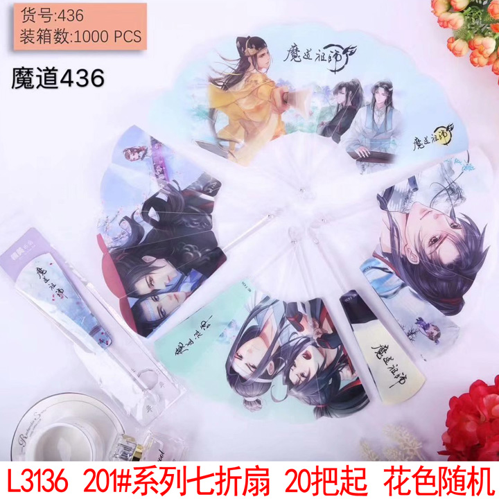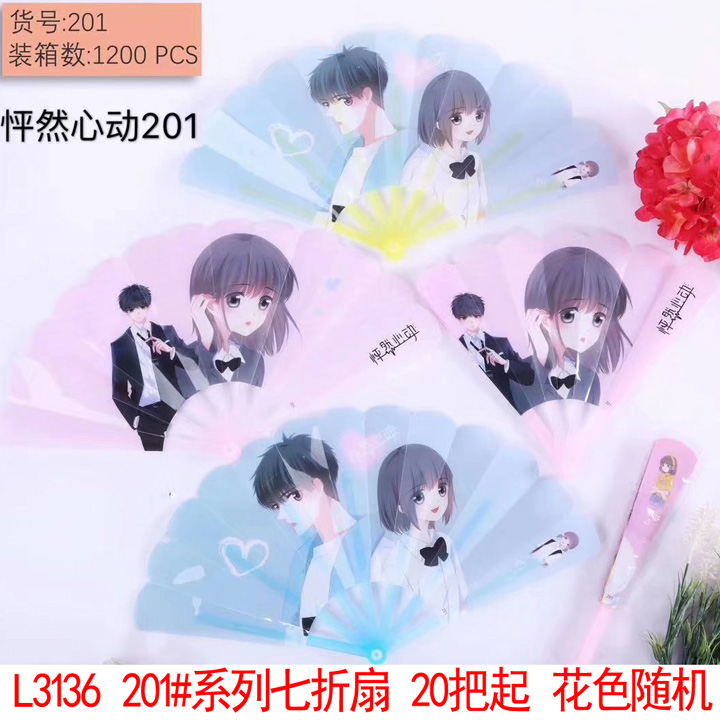L3136 201# Series seven-fold fan 10 set up plastic fan cartoon fan advertising fan summer two yuan store