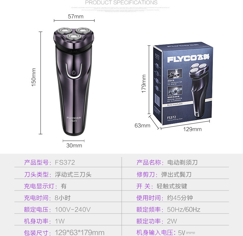 Feike razor FS372 rechargeable beard knife body washing three-blade men's smart electric razor