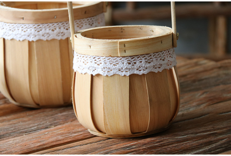 Fields Garden Series Hand Wood Slices Flower Basket Gift Containing Storage Basket Model Flower Arrangement Home Decoration