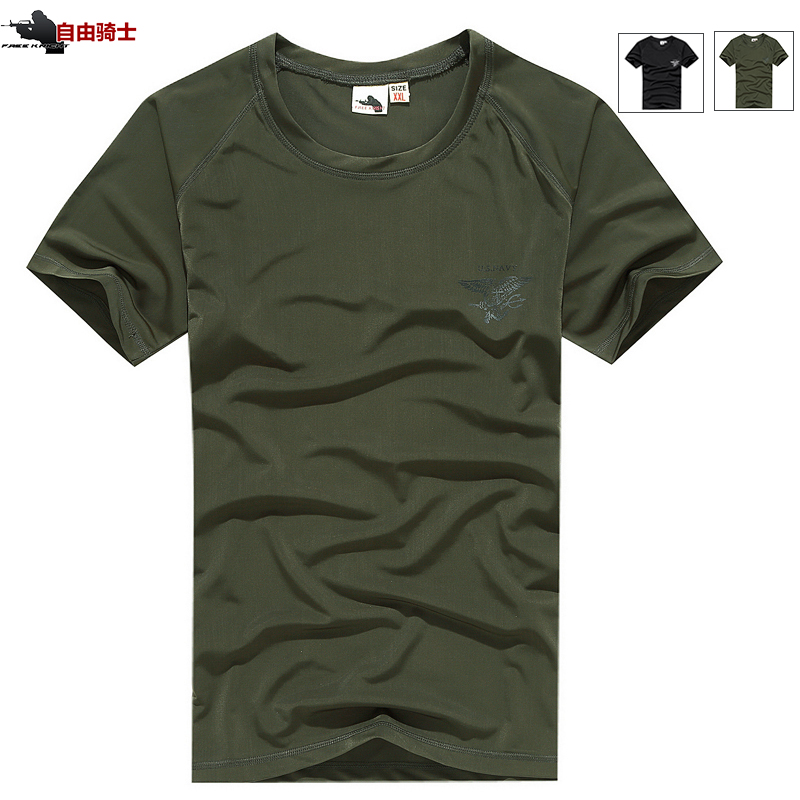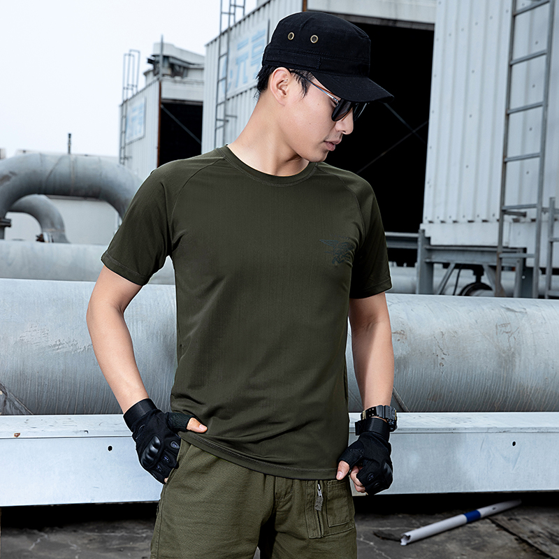 Summer outdoor sports Physical training Elastic Short Sleeve T-shirt Male Loose Casual Breathable Military Fan Fitness Clothing Tide
