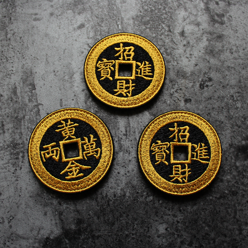 Delicate Embroidery Laser Hollowed-out Cutting Retro Bronze Money Embroidery Magic Sticker Zhang Golden two strokes of money into the treasure