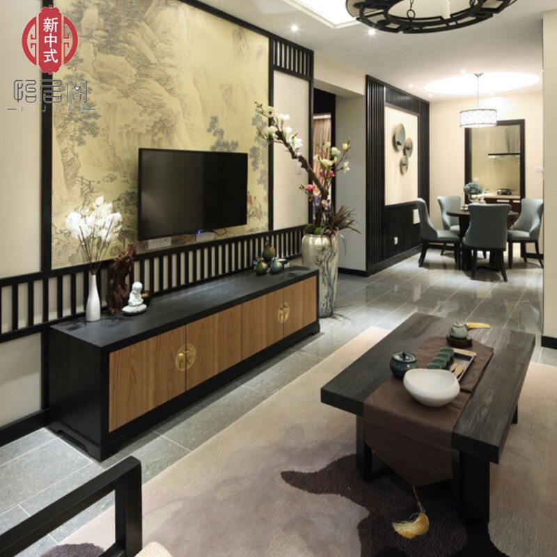 New Chinese style all solid wood TV cabinet Zen classical antique living room floor cabinet decoration locker villa furniture customization