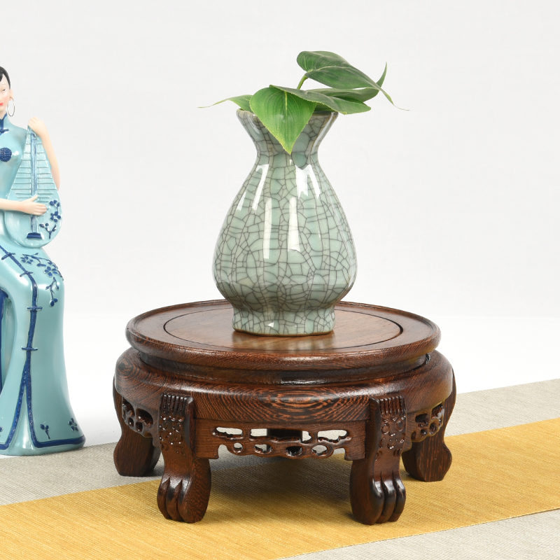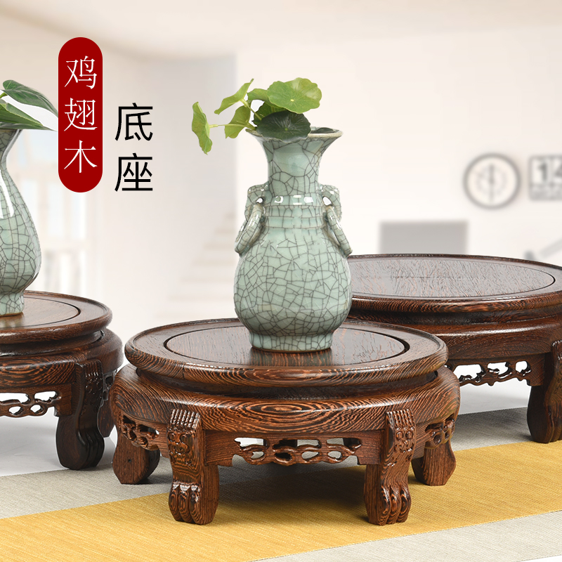 Chicken Wings Wood Base Solid Wood Flowerpots Engraving Handicraft Swing Accessories Vase Base Round Bonsai Buddha Fish Tank Base