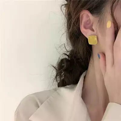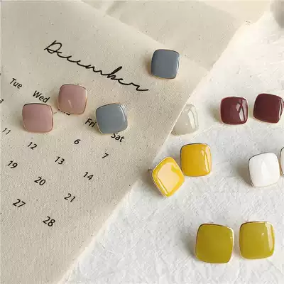 S925 silver needle Morandi color drop glaze ear needle female niche design sense geometric earrings temperament gentle French earrings