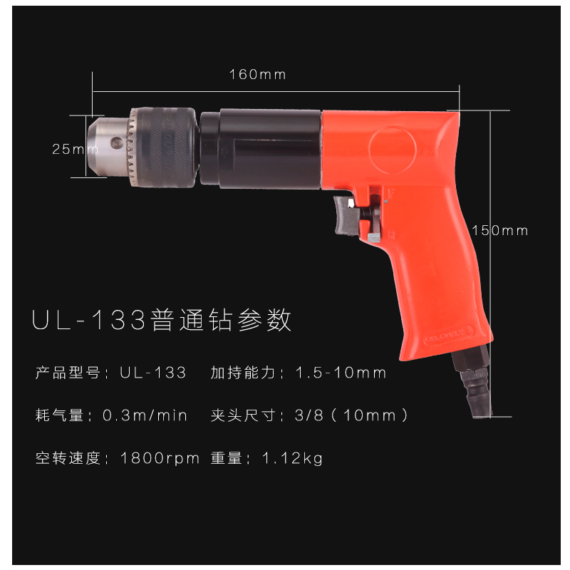 Pneumatic pistol type pneumatic drill 3 8 punched straight wind drill with flip-flop self-locking type pneumatic drill rig 10mm