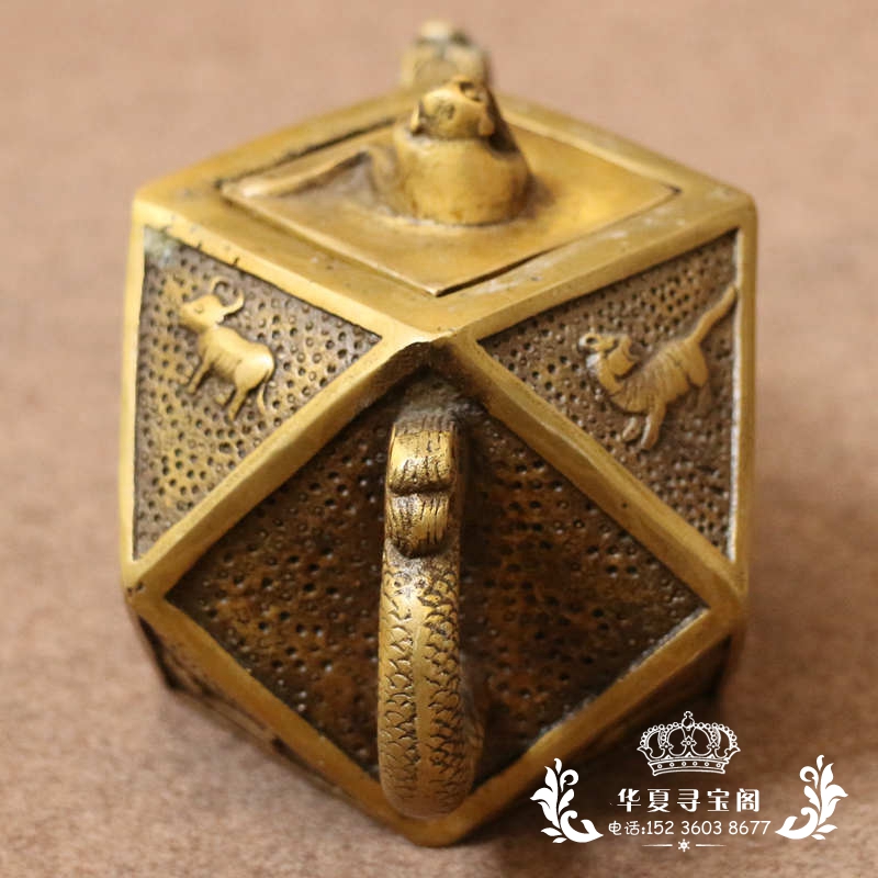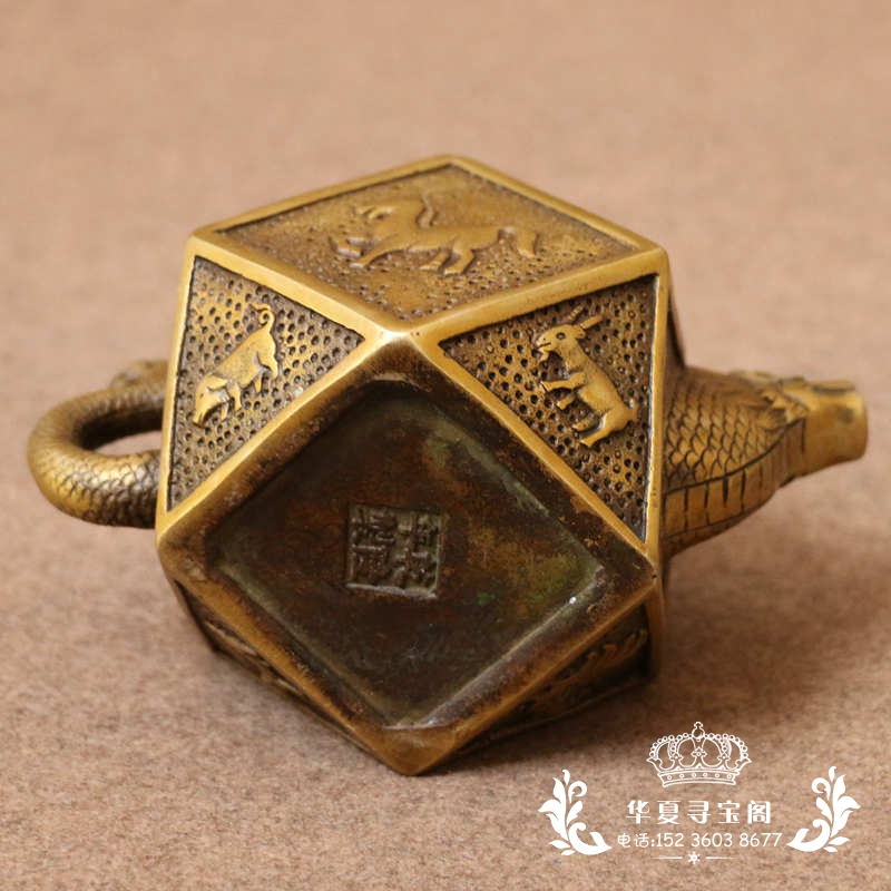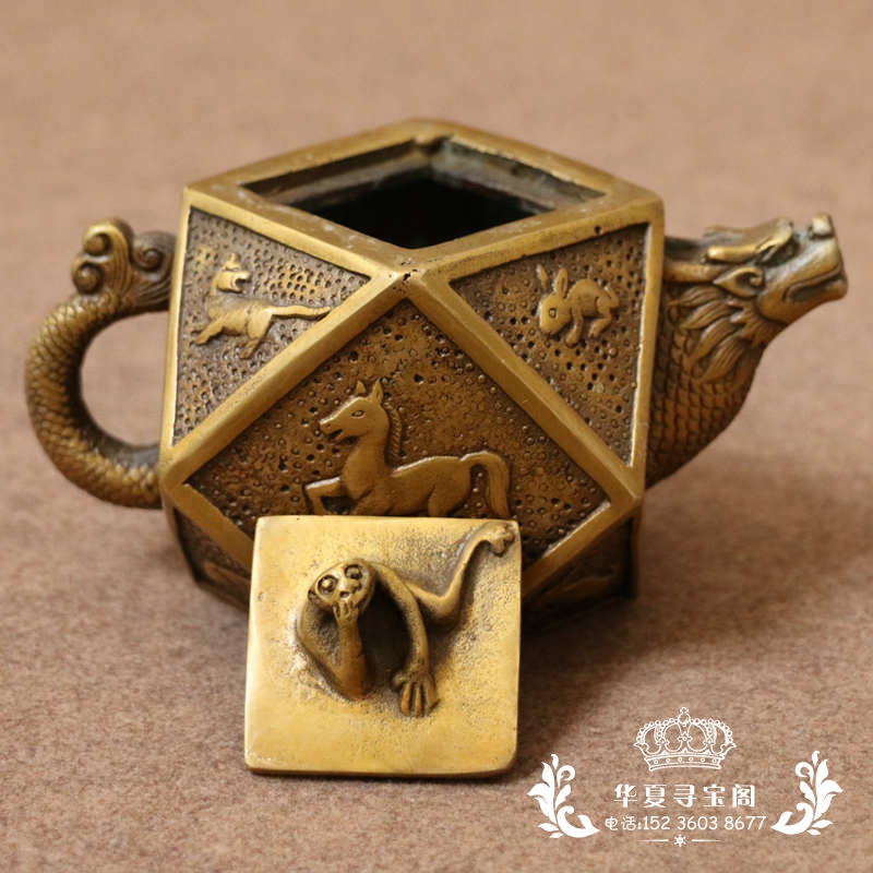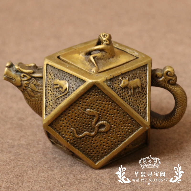 New Products Brass Teapot Bou Ancient Shelf Furnishing Bronze Ware Ancient Play Collection Antique Pure Bronze Prismatic Zodiac Bronze Pot