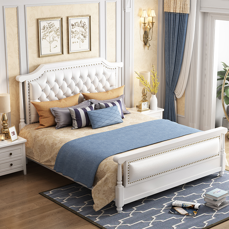 American light luxury leather bed 1 8m white master bedroom double bed solid wood bed modern minimalist princess bed simple beautiful furniture