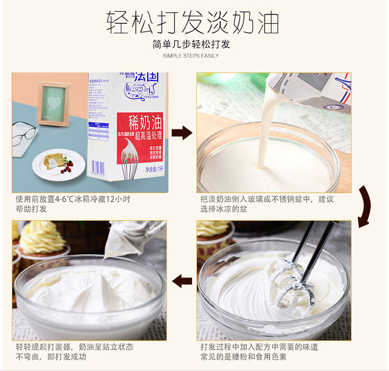 Import France Kendi Pale Milk Oil 1L* 12 Whole Box Fresh Cream Cake Framed Animal Cream Baking Raw