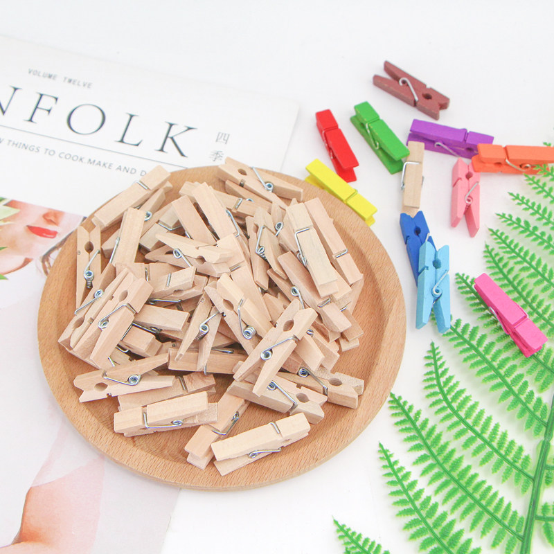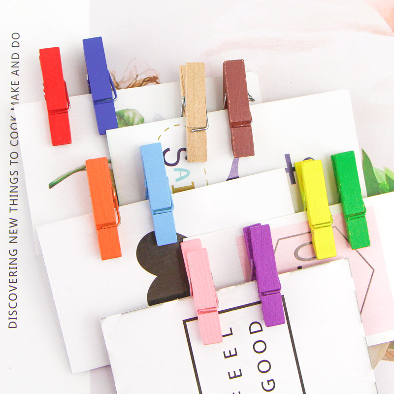 Color Original Wood Color Small Wood Clips Hemp Rope Photo Wall Wedding Han Style Cute Teenage Girl Log Photo Convenience Post Message