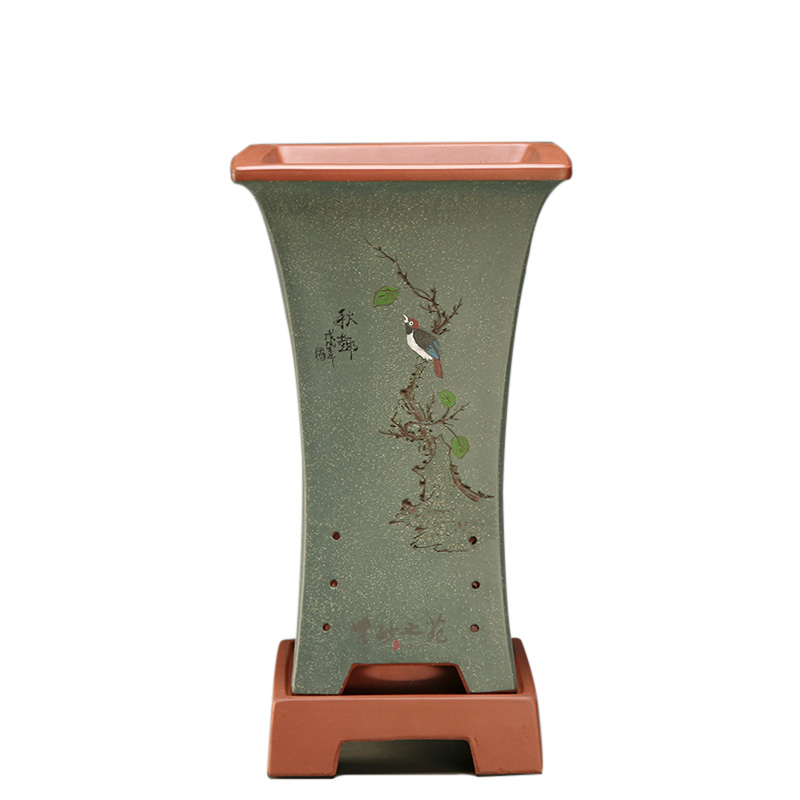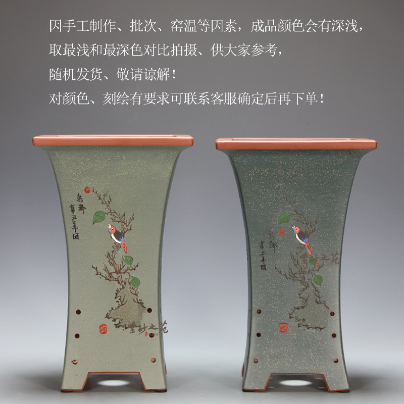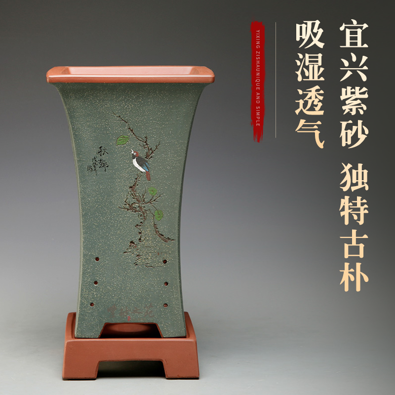 Purple Sand Flower Pot Blue Flower Pot high 4 square ladle mouth large orchid special flower pot Whelan Jianlan pedestal tray-Taobao