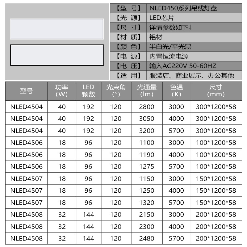 Suspension Wire Type Mount Accessories Bag NLED4506 white -18W - warm white NLED4506 white -18W - white light NLED4506 black -1