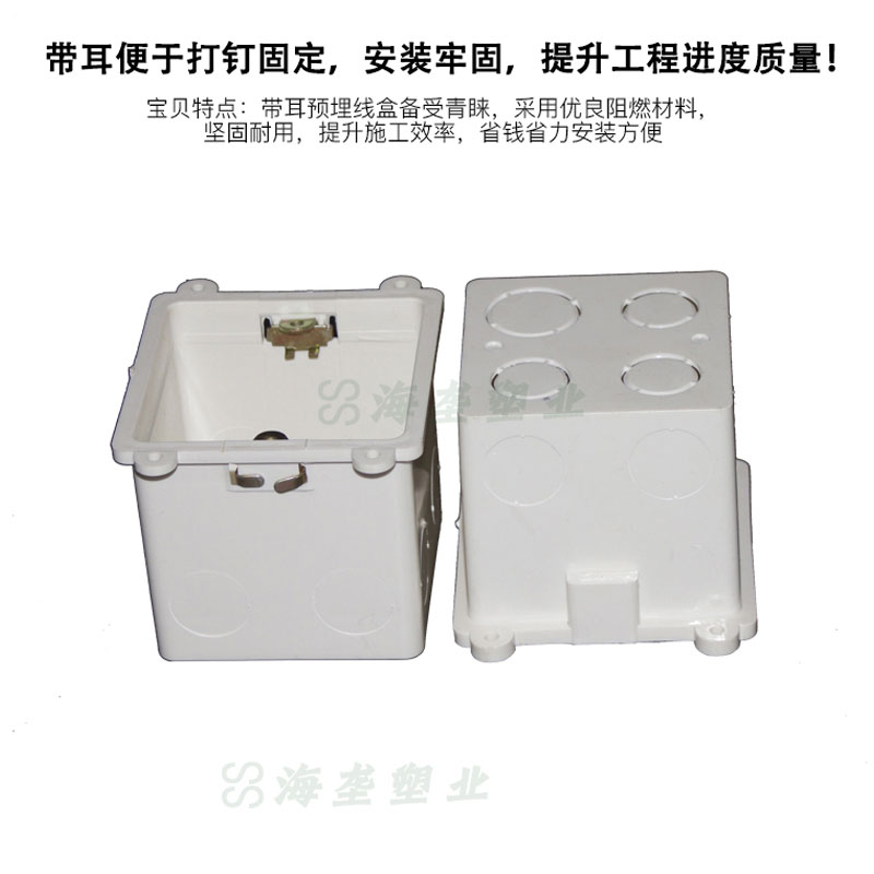 Plastic pvc flame retardant 50 70 with ear embedded box fixed hole positioning junction box concealed box switch socket low box 86