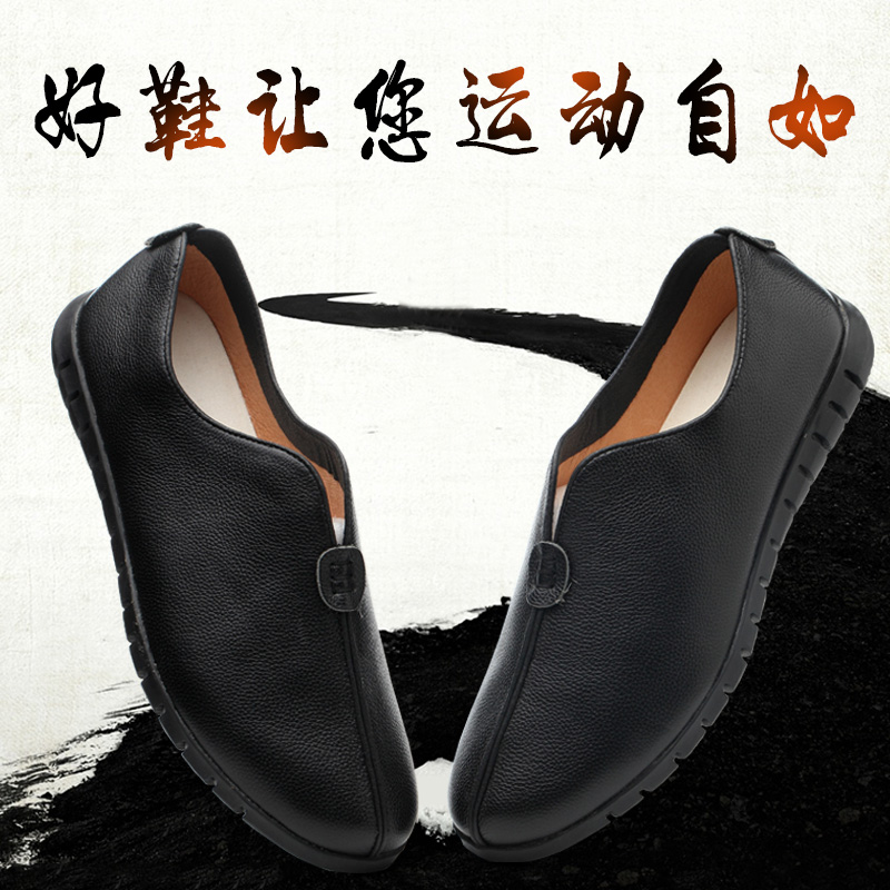 Tai Chi Martial Arts Sneakers Man Spring Summer New Soft Bull Leather Beef Tendon Bottom Black Genuine Leather Taijiquan Kung Fu Training Shoes
