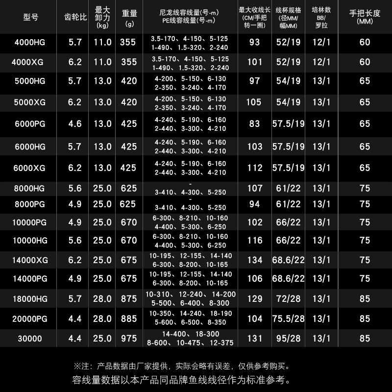 8000PG strong gear ratio 4 9 10000PG strong gear ratio 4 9 8000HG high speed ratio 5 6 14000XG super high speed ratio 6
