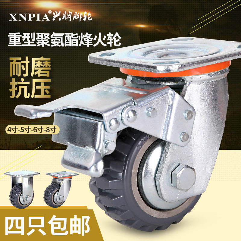 Xing brand 4 inch 5 inch 6 inch 8 inch silent universal wheel Polyurethane heavy duty beacon brake wheel trolley directional caster
