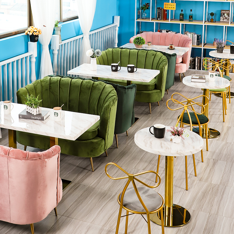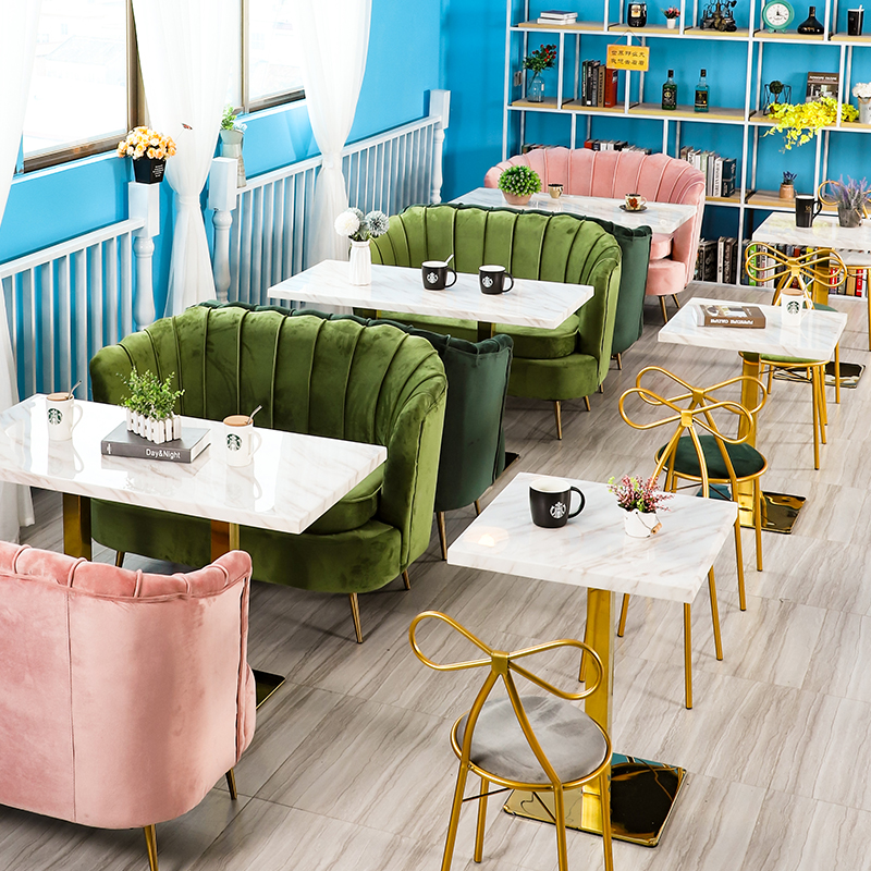 Milk Tea Dessert Shop Net Red Sofa Combination Cafe Card Seat Marble Table and Chair Leisure Double Western Restaurant Customization