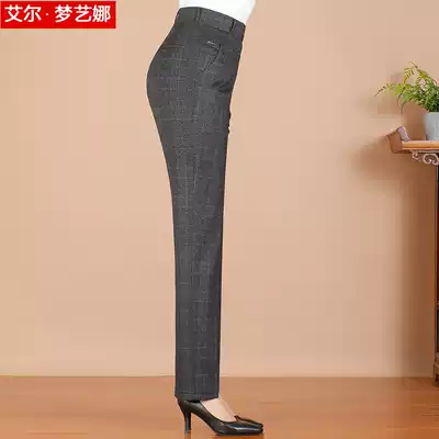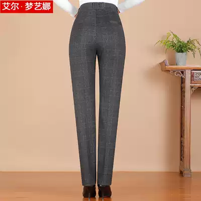 Mom pants spring and autumn high waist straight loose middle-aged women's pants summer 40-50 years old plaid middle-aged women's trousers