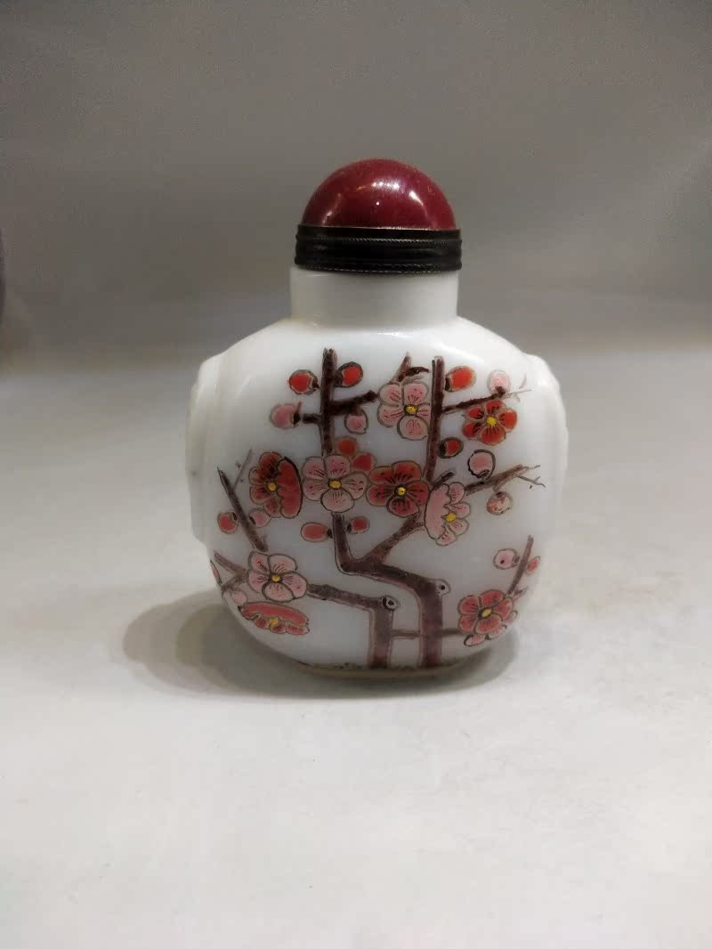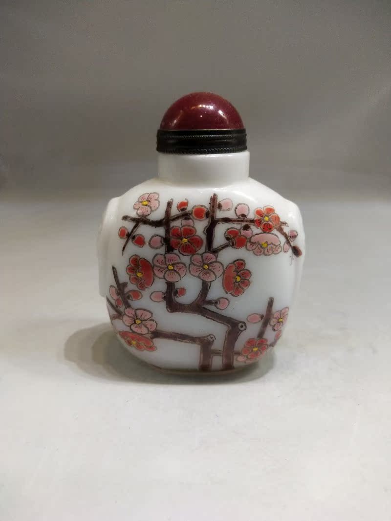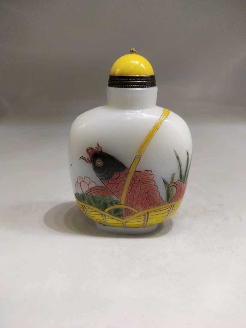 Minority small gift antique play glass Montessori large practical snuff bottle hand-painted pastel carp plum blossom figure