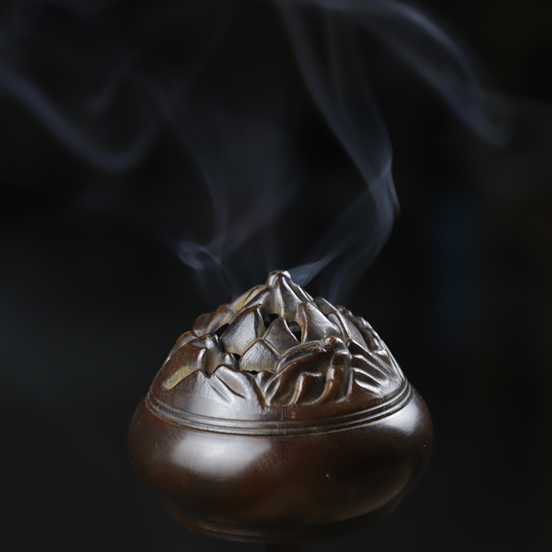 Antique bronze collection antique lotus lamp incense pure copper incense burner ring incense thread tea table study classical decoration
