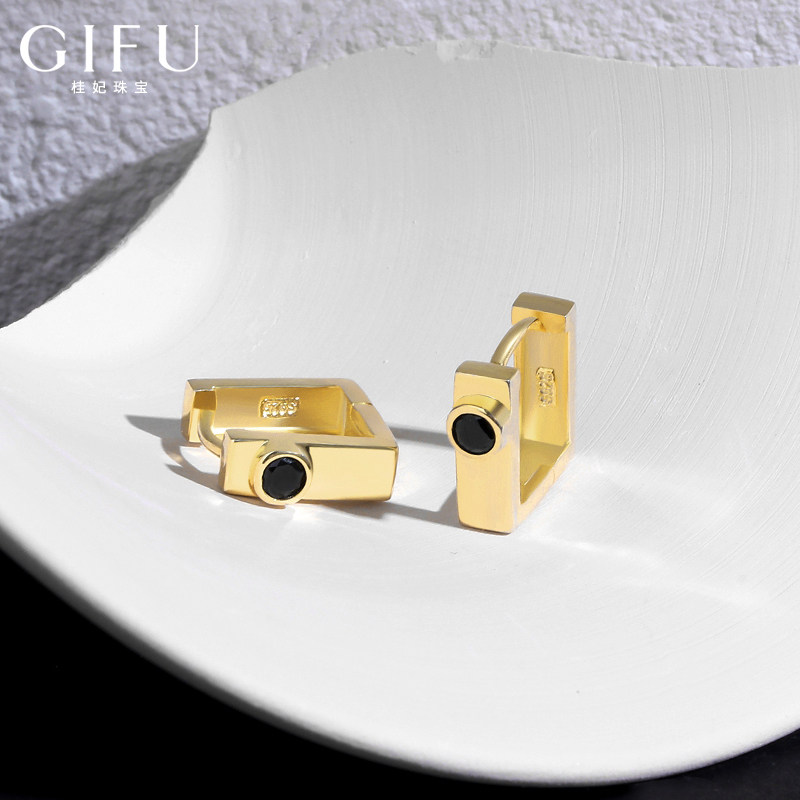 GIFU Pure Silver Earrings Woman Fashion Superior Gold Square Small Earlobe Suitable Ear Button Ear Pin Small Ear Pendant