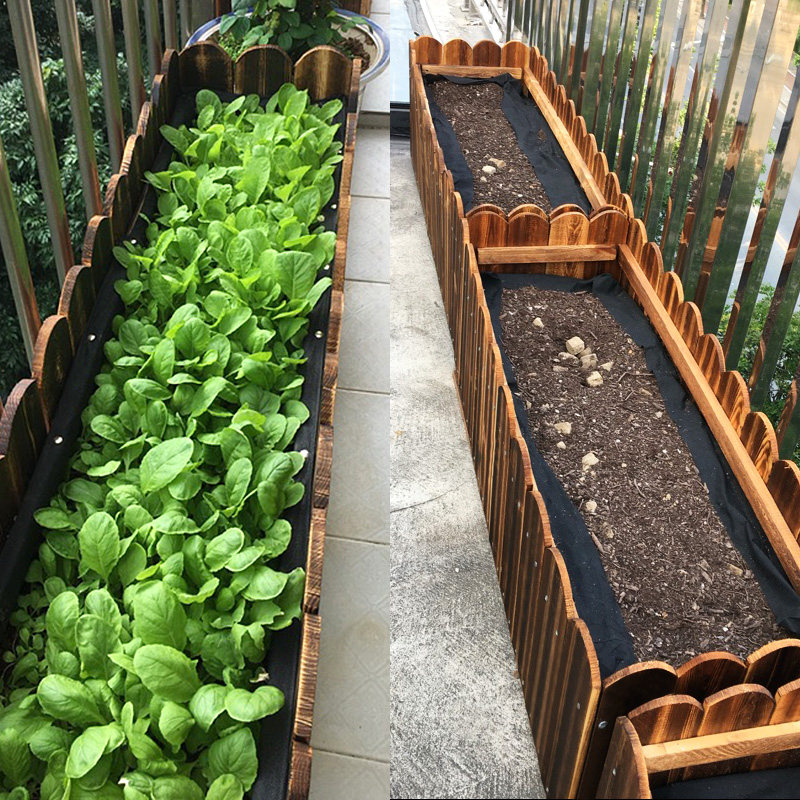 Anticorrosive wood flower box outdoor courtyard carbonized wood flower pot wood flower trough large rectangular planting box balcony vegetable pot