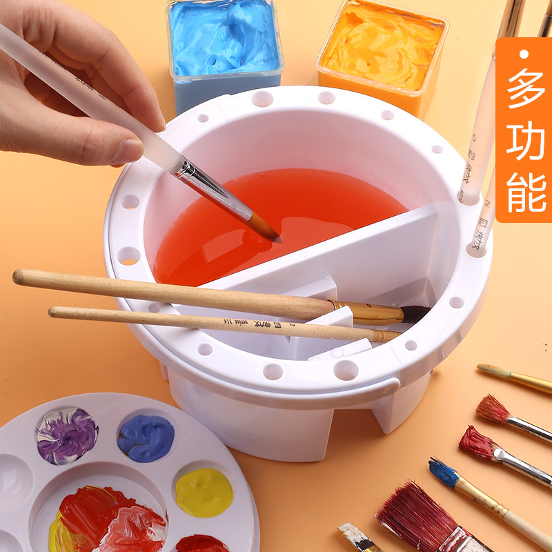 Quick Liwen multi-function pen washing bucket Three-in-one with color palette bucket Art Shabu-shabu pen holder Pigment gouache Watercolor painting Chinese painting Student special tools Small portable hand in hand to carry the pen washing device