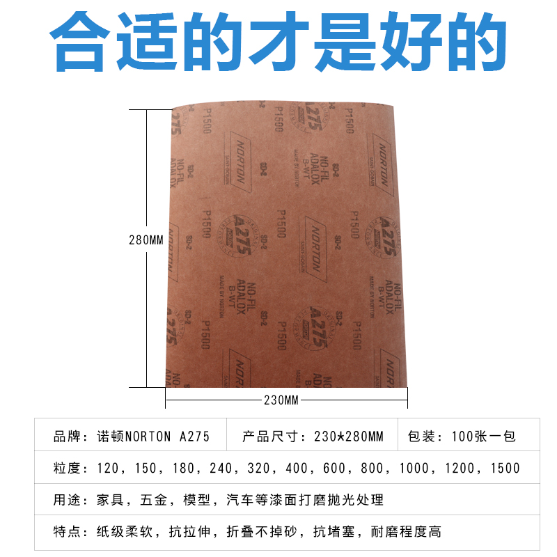 Saint-Gobain NORTON NORTON sandpaper a275 woodworking metal paint dry abrasive sand leather square polished polished sandpaper