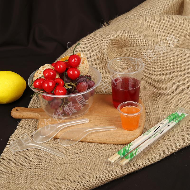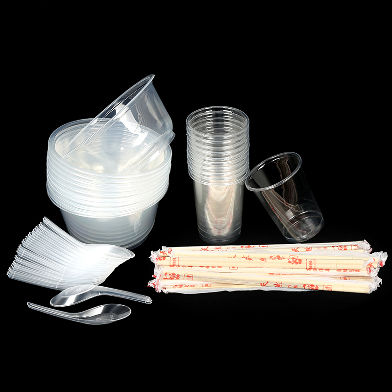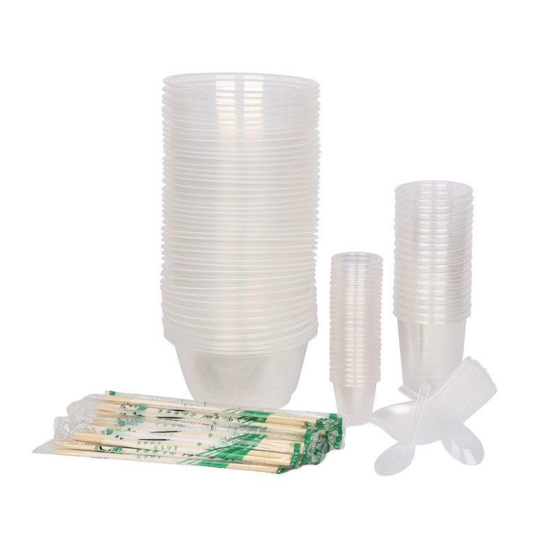 Disposable bowl Plastic round soup bowl without lid Environmental protection household banquet outdoor barbecue thickened bowl chopsticks combination