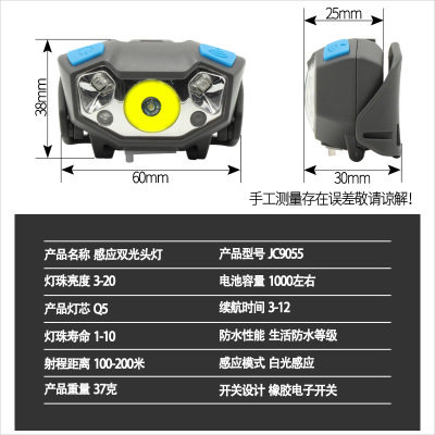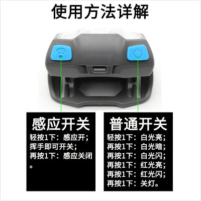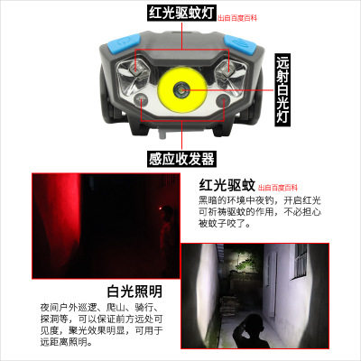 Wild fishing light LED headlights super light portable charging night fishing induction headlights white light red light double light source road sublamp