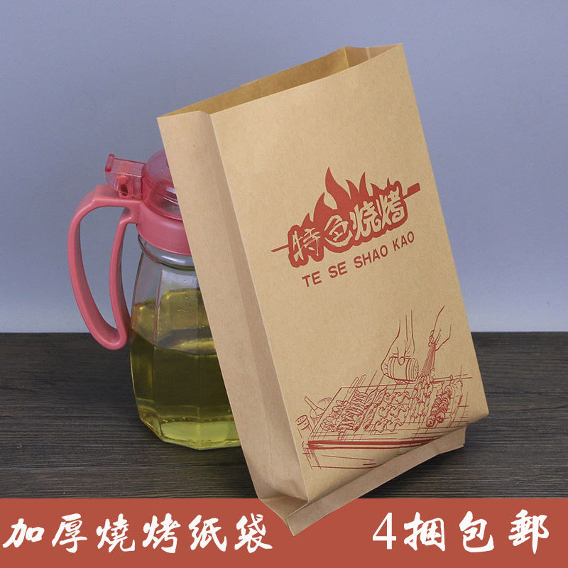 Barbecue delivery packing paper bag Anti-oil disposable thickened kraft paper fried skewer packaging paper bag can be customized 100
