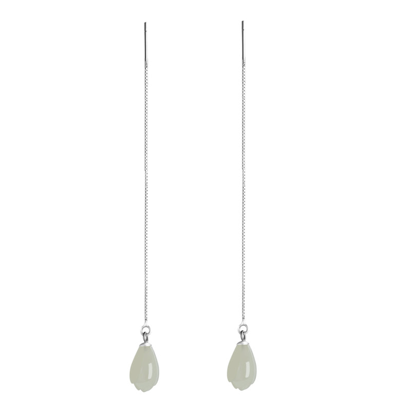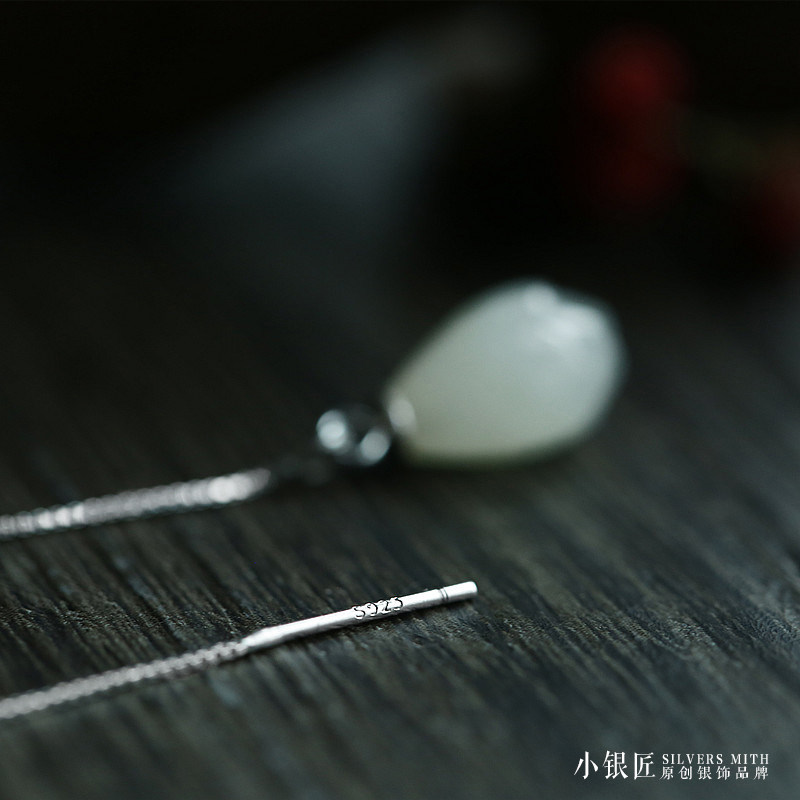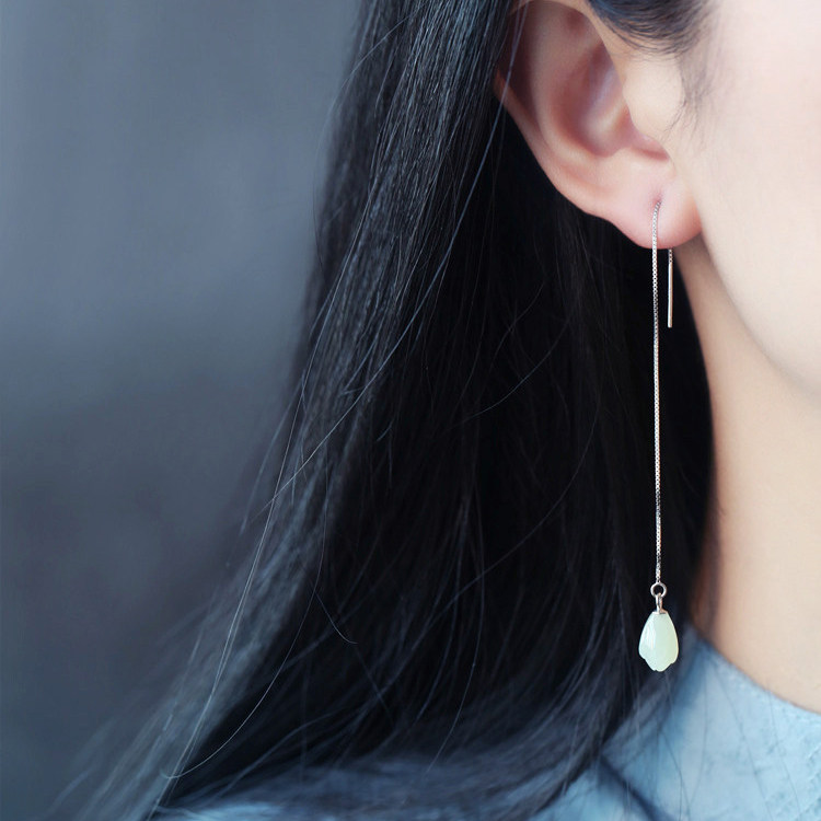 Fairy 925 sterling silver ear needle female Hetian jade tulip tassel long version retro temperament earrings earrings earrings ear jewelry