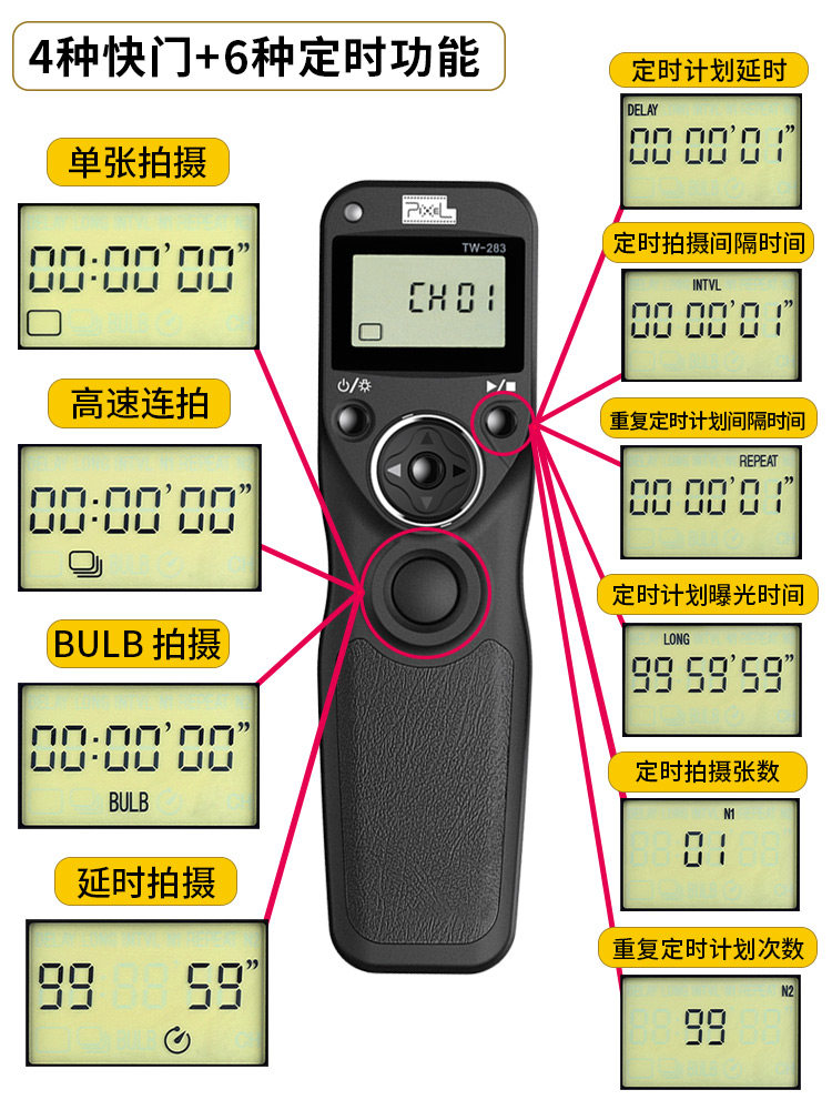Pinsel TW-283 Wireless Shutter Cable SLR Fixed Delay Remote Control Canon EOS R 6D2 5D3 5D4 5D2 6D 80D 850D 800D 5DSR 200D 7D2 90D Camera