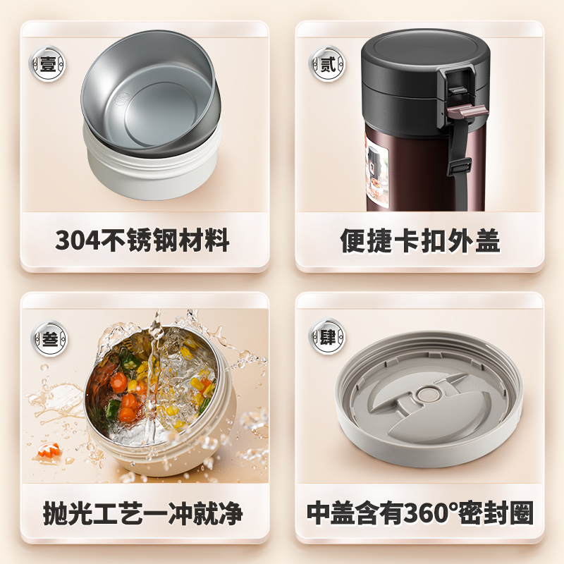 (All steel) 4 layers 1.8L beige 12 hours insulation T2549 free insulation bag + tableware