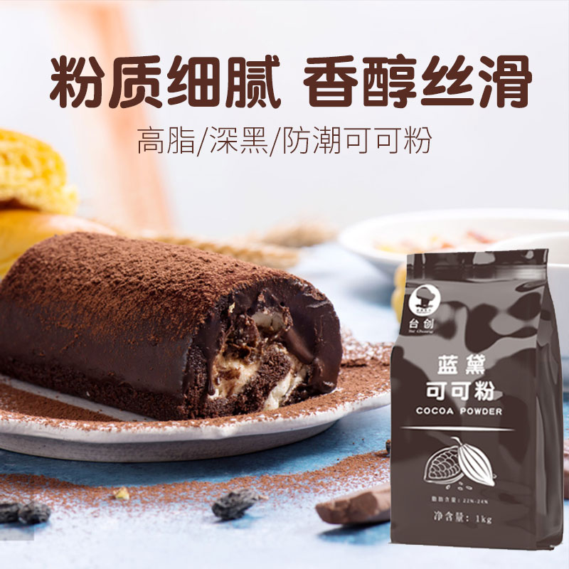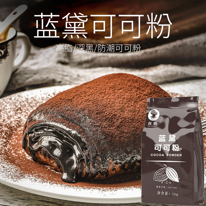 Taichuang Landai high-fat cocoa powder 1kg dark black moisture-proof baked drink decoration low-sugar dirty bag chocolate powder