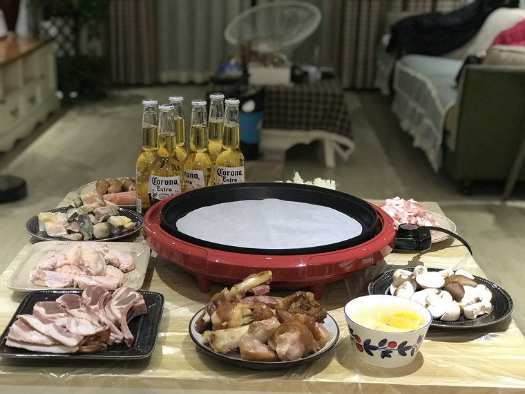 Korean-style circular multifunctional electric baking tray electric oven Home Roasting Pan Machine Smoke-free Non Stick Iron Plate Burning Steak Pan