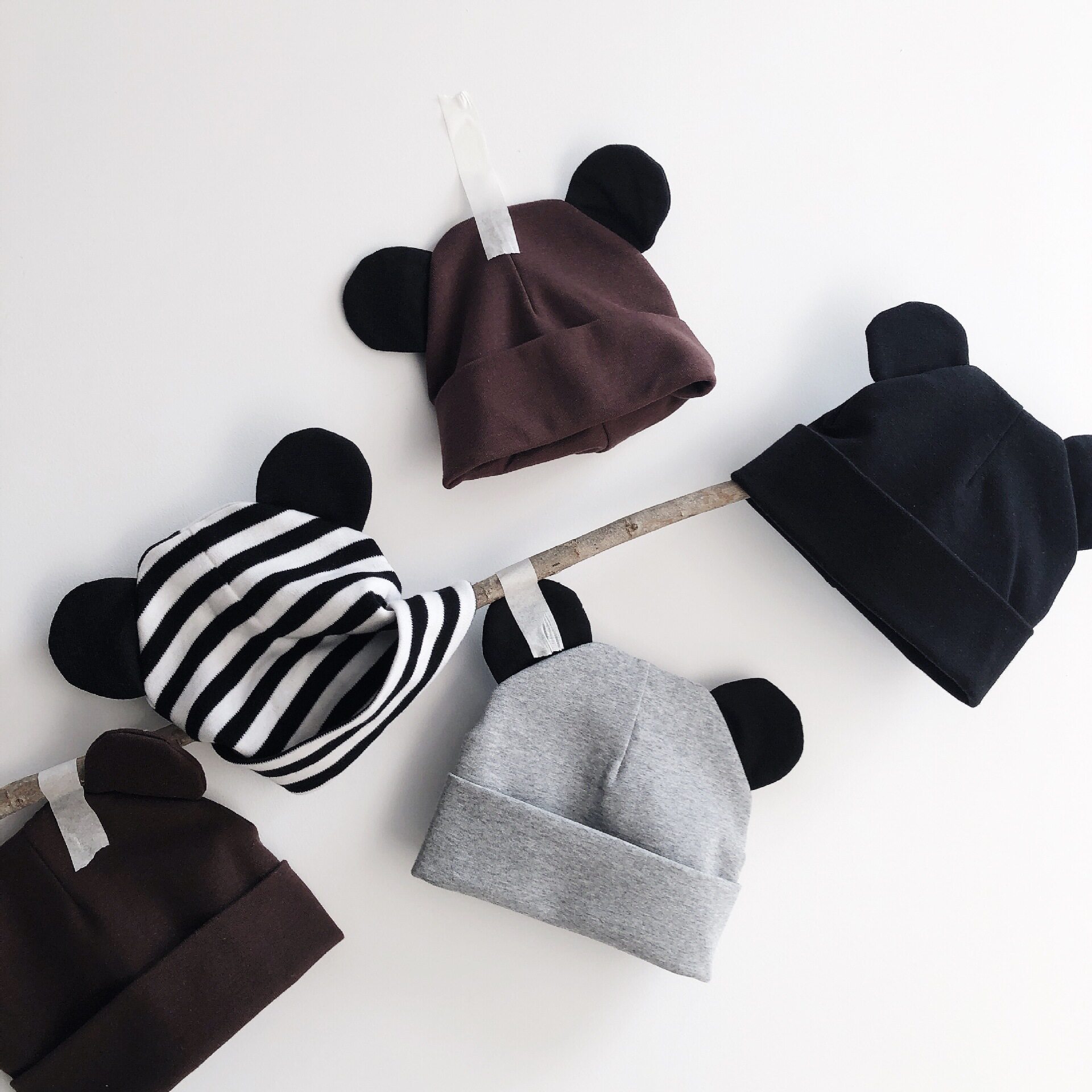 Black white hat black ears striped pink brown black ears full grey grey ears full brown