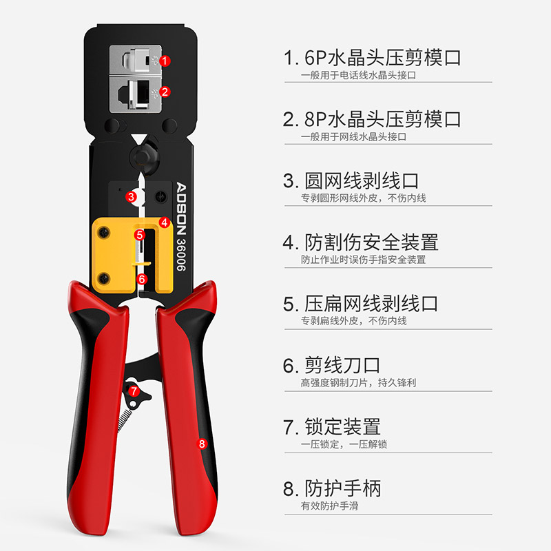 Eidersen Dual-use Triple Wire Wire Crimping Pliers Telephone Network Route Press Wire Pliers 4P6P8P Crystal Head Press Pliers Internet Exfoliation Pliers Octacore Network Route Perforated Crystal Head Press Pliers