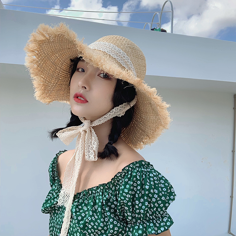 Hat female summer small fresh foldable woven straw hat beach big brim sunscreen sun hat Korean version of the wild tide summer