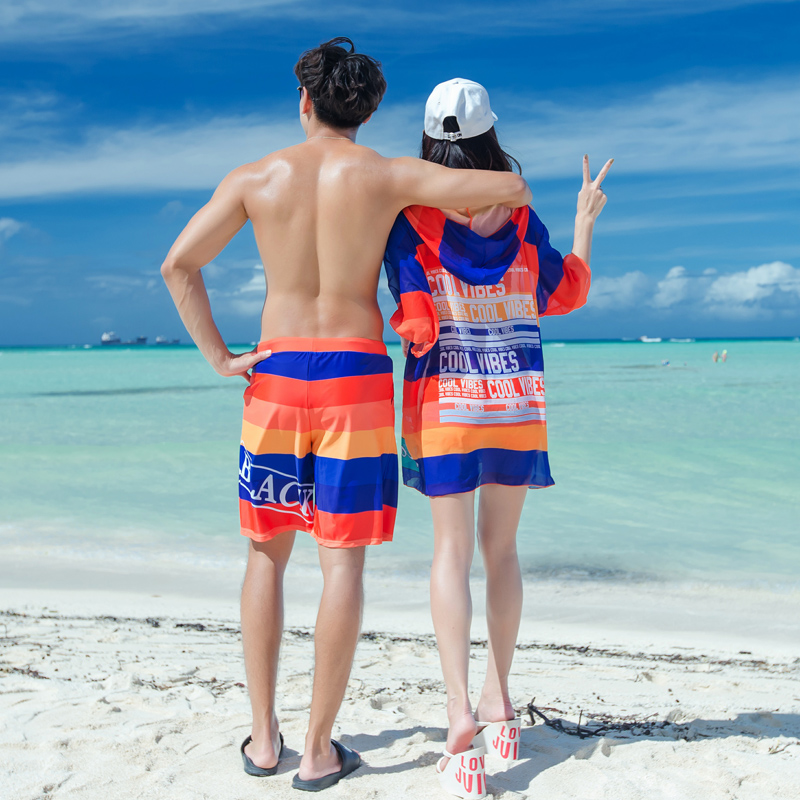 Parent-child couple swimsuit women's three-piece set bikini looks thin and covers the belly gathered to soak hot spring men's beach pants swimsuit