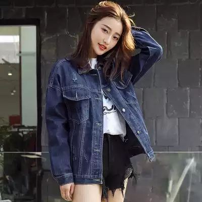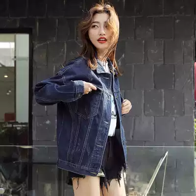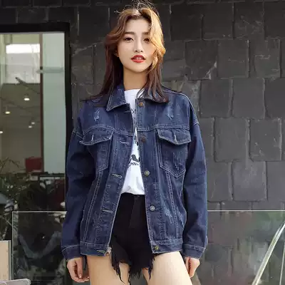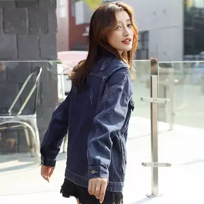 2021 spring and autumn new Korean version of dark blue denim jacket women's loose bf style wild student short top tide