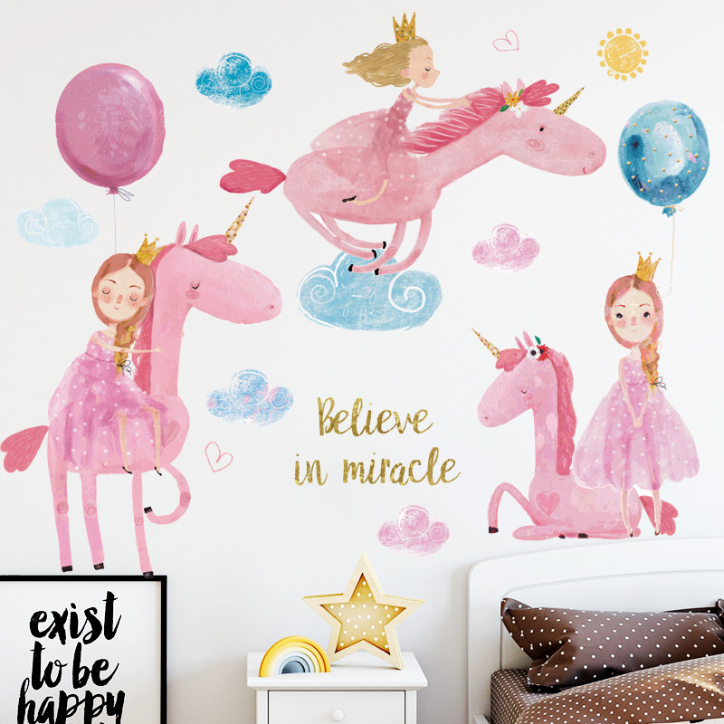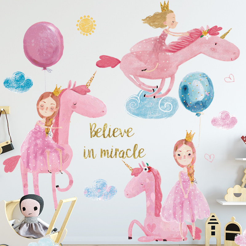 Children's Room Girl Baby Kindergarten Classroom Placement Wall Stickup Self-adhesive Wallpaper Wall Surface Decorated Pink Clouds