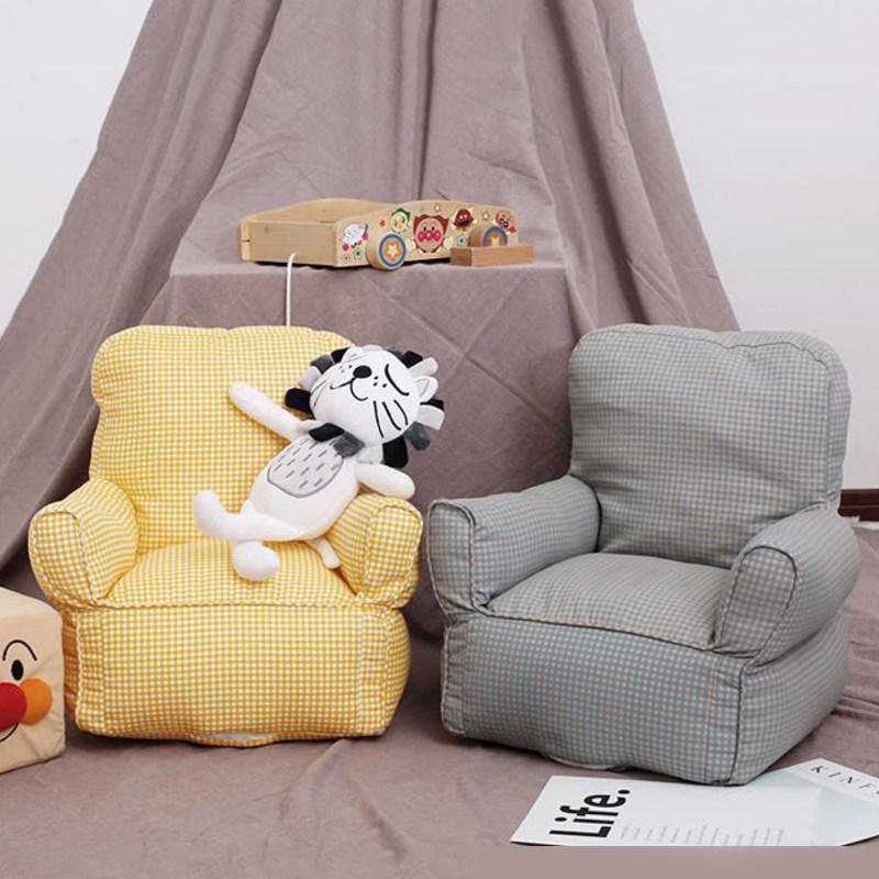 Nordic Wind All-cotton Canvas Children Cloth Art Checkered Sofa Bean Bag Sofa can be detached Photography props Princess Room