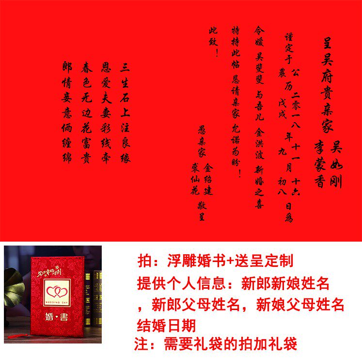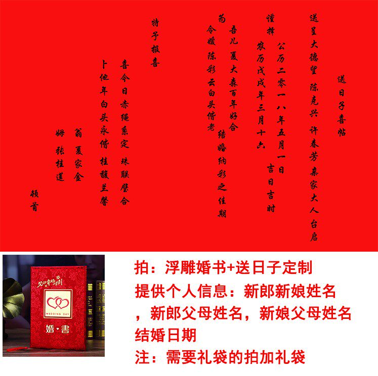 Republic of China wedding book Chinese wedding gift day Handwritten engagement book Appointment letter day Affixed wedding contract Wedding gift souvenir