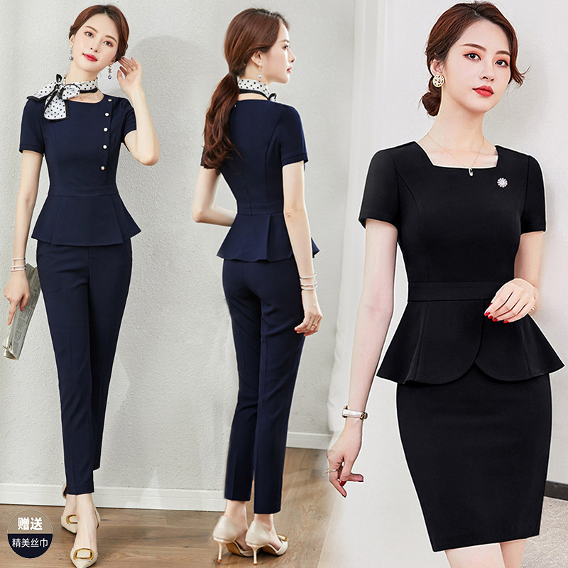 Hotel front desk overalls suit goddess fan professional wear summer fashion beautician jewelry store thin two-piece set