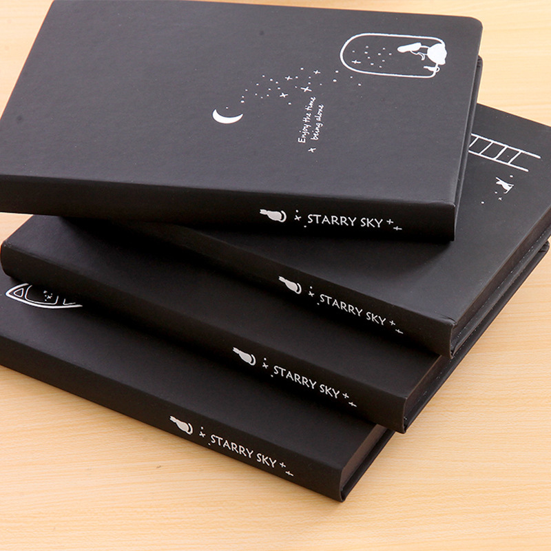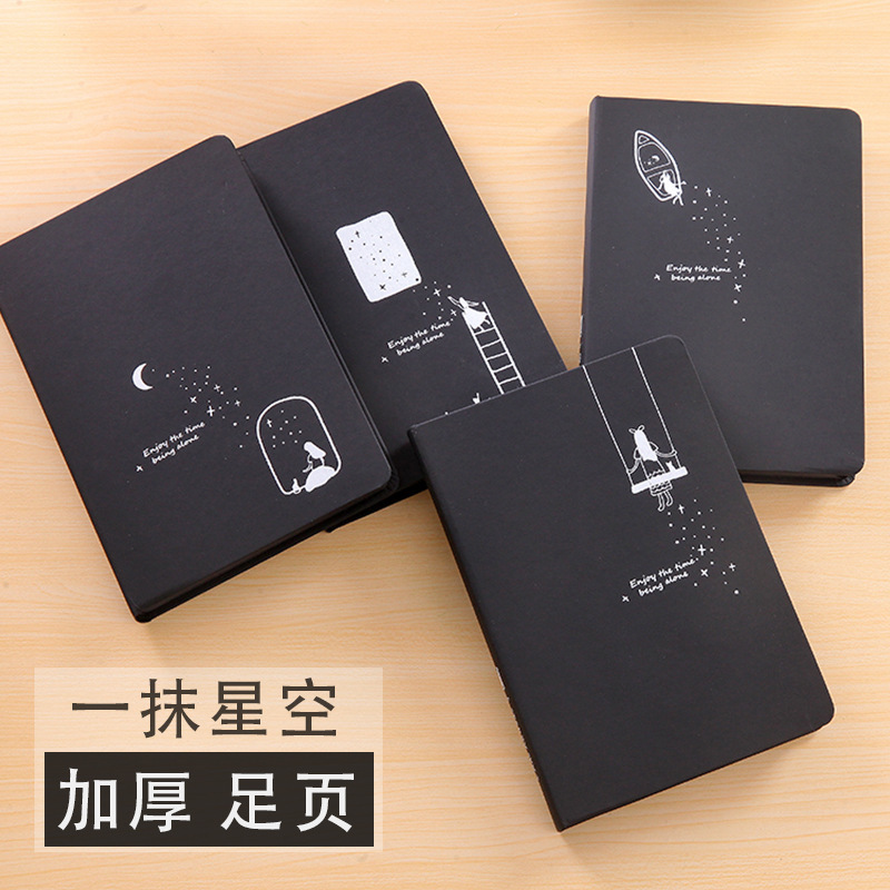 Star Japanese cute 32k tactile leather book pure black inner page notebook net red simple hand book girl simple thick diary simple literary hand book diary net red diary hand book