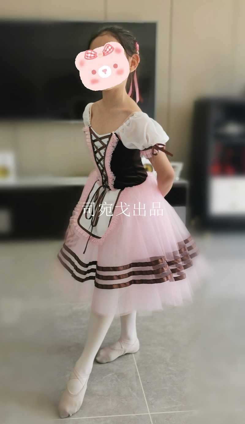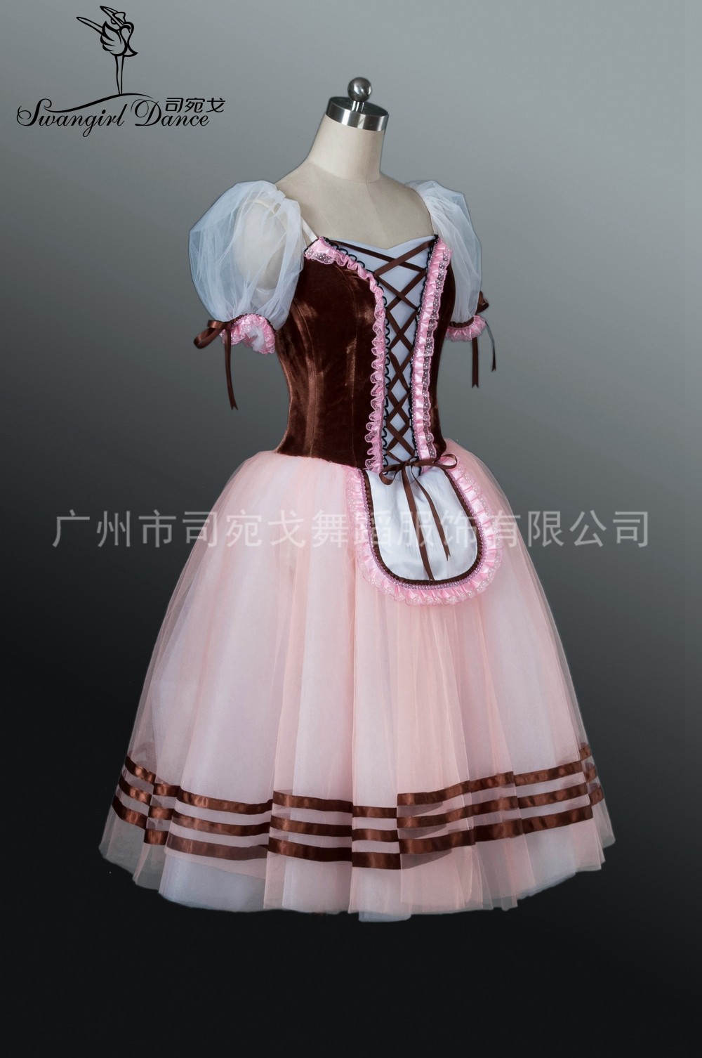 Pink Professional Ballet TUTU Long Dress Giselle Race Dress Skirt Woman 5 Floors Rhombus