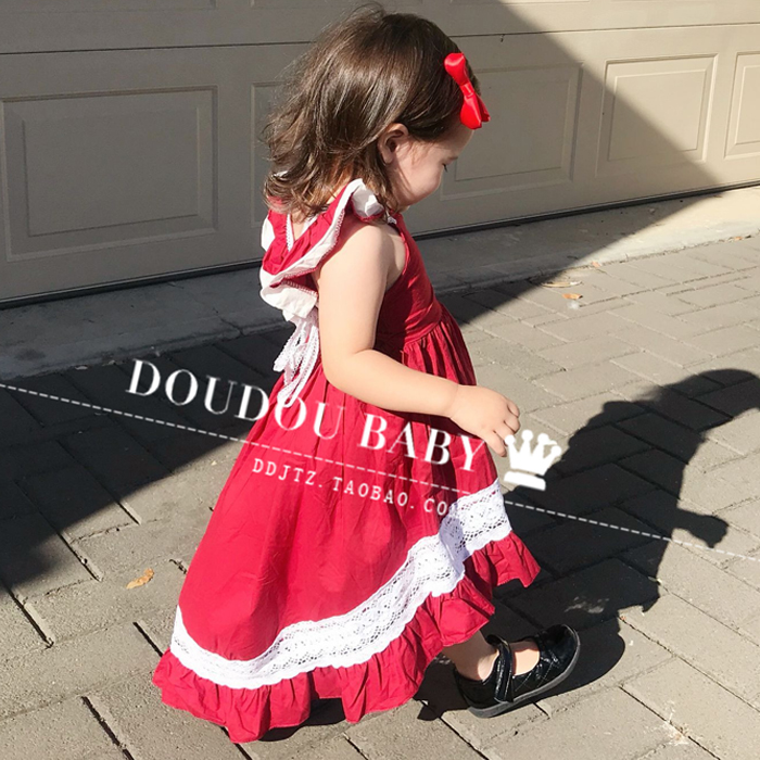 Girls dress Summer Children's clothing Front short back long Dovetail dress European and American baby lace halter irregular skirt