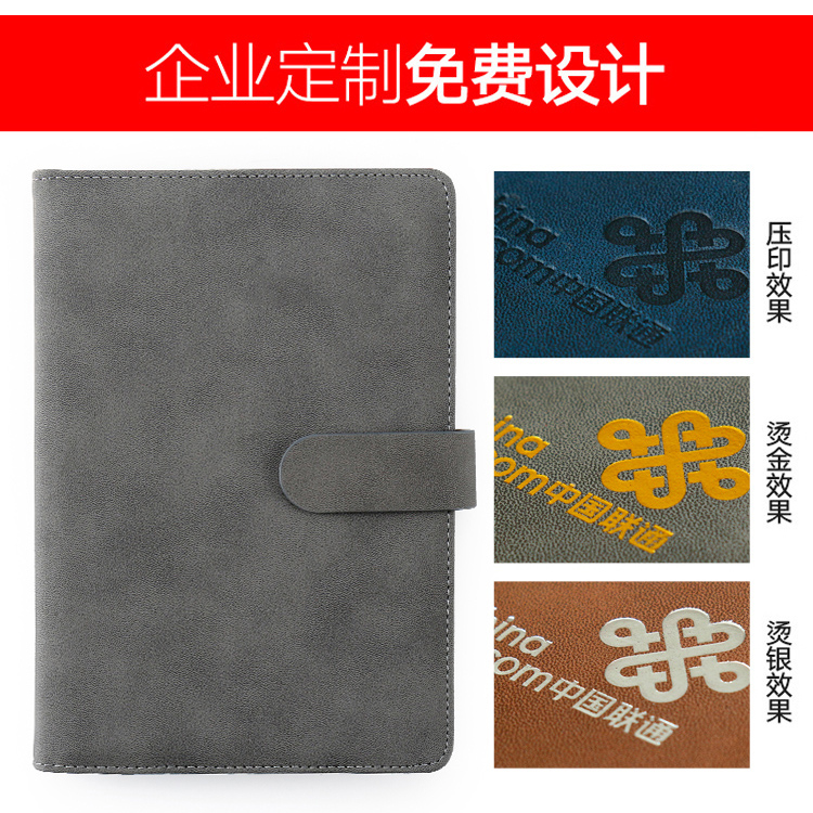 Gray-224 page A5 imitation cow stereo buckle G15# plastic pen 4 hard dark gold box